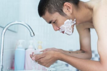 Gunakan pembersih yang dirancang khusus untuk kulit pria. Facial wash yang baik akan membersihkan minyak berlebih, mengangkat kotoran, dan menjaga kulit agar tidak terlalu kering.