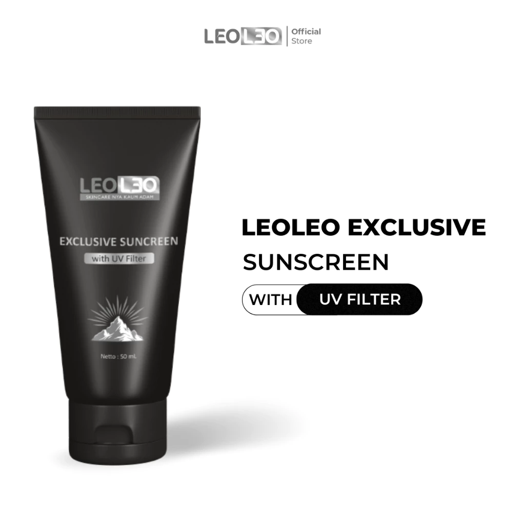 LEOLEO Exclusive Sunscreen Sunscreen unggulan pria modern dengan UV Filter SPF 50 pA ++ memberi perlindungan extra dari sinar matahari. Kandungan bahan aktif yang di formulasikan Exclusive proposional untuk memastikan hasil dari penggunaan yang aman dan maksimal. 1. UV FILTER : Titanium Dioxide, Ethylhexyl Methoxycinnamate dan Methylene bis-benzotriazolyl tetramethylbutylphenol. 2. Syricalm 3. HA-LQ Isi : 50ml legalitas BPOM : NA18231701910